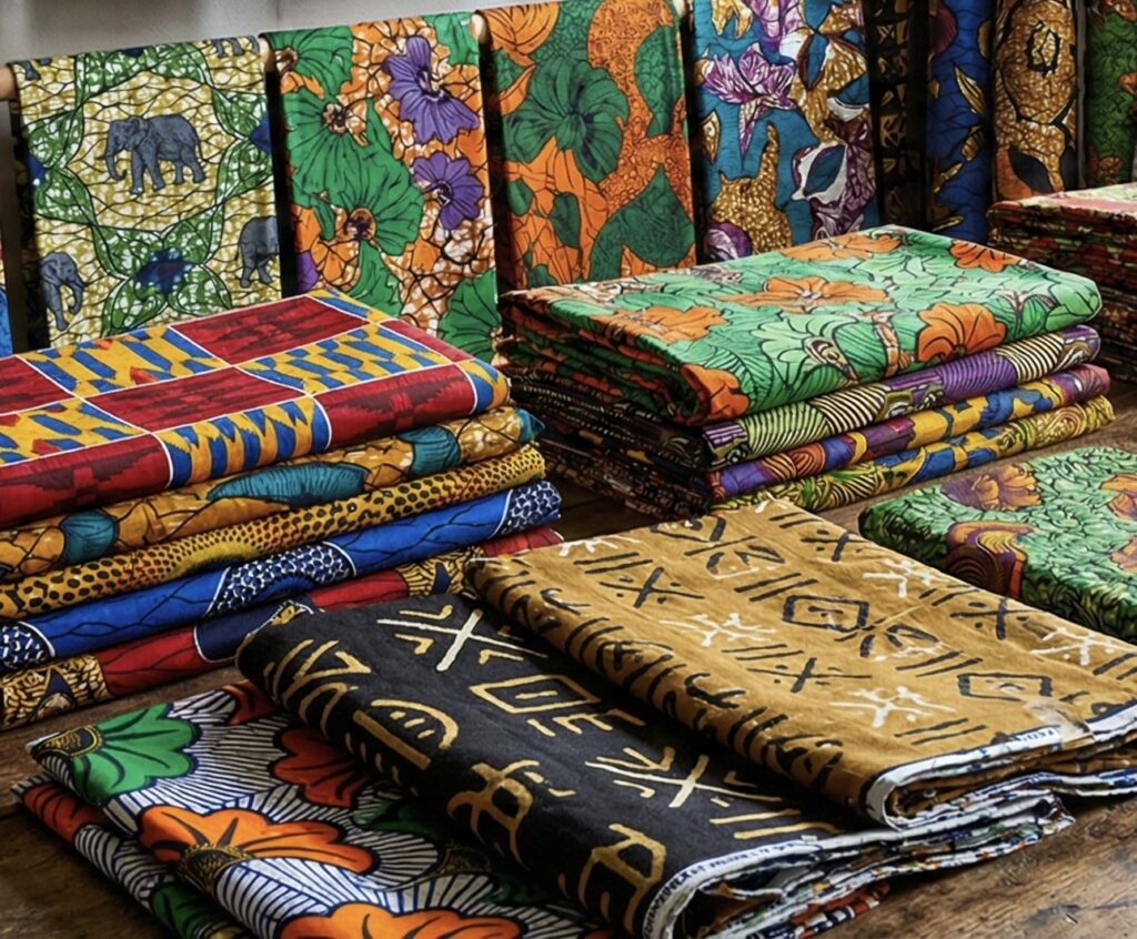 Jupe longue taille haute en Wax – Vert et Rouge